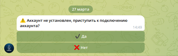 Далее бот предложит подключить аккаунт — нажмите «Да».