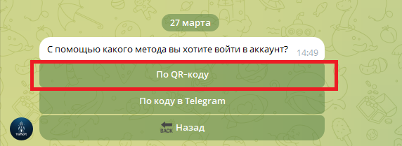 Выберите способ авторизации — рекомендуется через QR-код.
