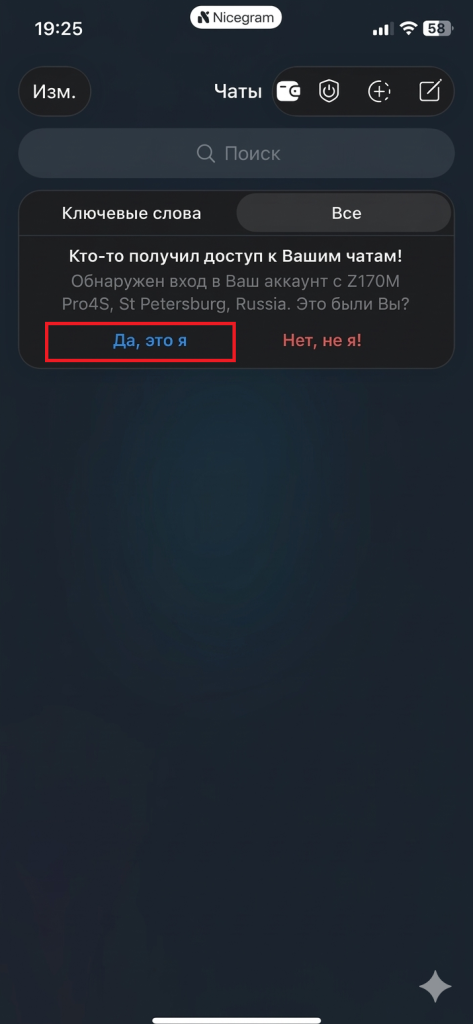 Необходимо подтвердить вход, нажав «Да» в сообщении «Это вы?».