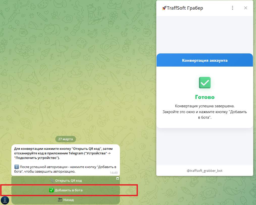 - нажмите «Добавить в бота»